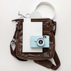 Fototaschen und Kaffeebecher